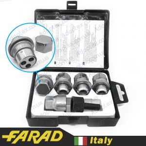 Оригинальные секретки Farad изготовляются на заводе в Италии. В данном комплекте представлено 4 болта с индивидуальным секретным рисунком и ключом к ним. Внутри упаковки содержится специальный код для возможности восстановления ключа при его потере.