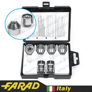 Оригинальные секретки Farad изготовляются на заводе в Италии. В данном комплекте представлено 4 гайки с индивидуальным секретным рисунком и ключом к ним. Внутри упаковки содержится специальный код для возможности восстановления ключа при его потере.