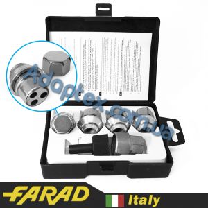 Оригинальные секретки Farad изготовляются на заводе в Италии. В данном комплекте представлено 4 гайки с индивидуальным секретным рисунком и ключом к ним. Внутри упаковки содержится специальный код для возможности восстановления ключа при его потере.